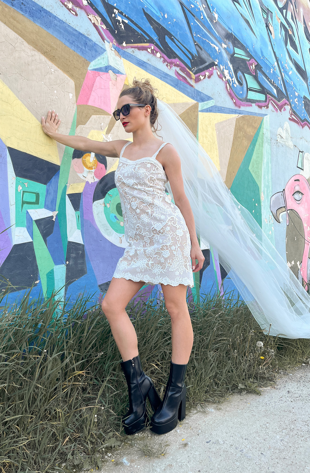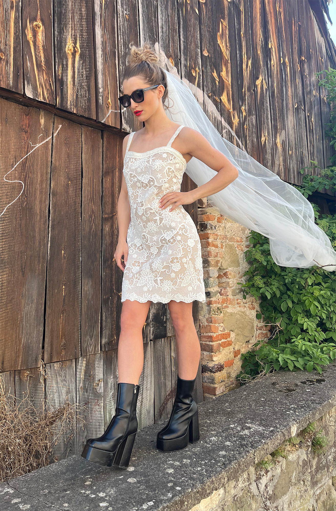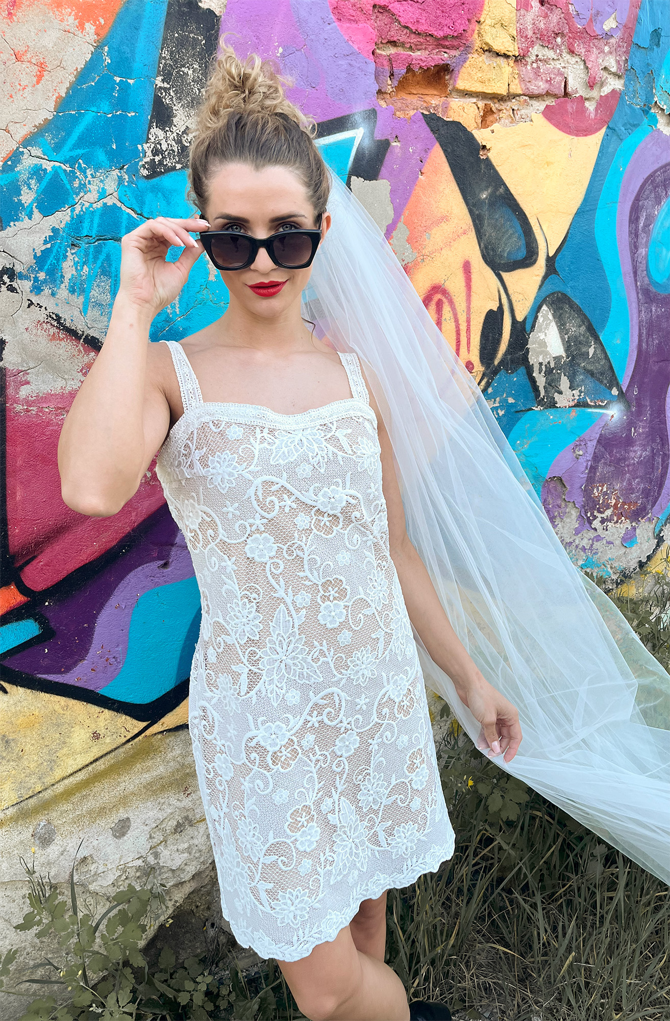 - na prevlečenie, bez zapínania - krátke čipkované - vhodné na postavu, ktorá nemá široké boky - farba: telový podklad a vrch off-white - veľkosť 34 - 36
