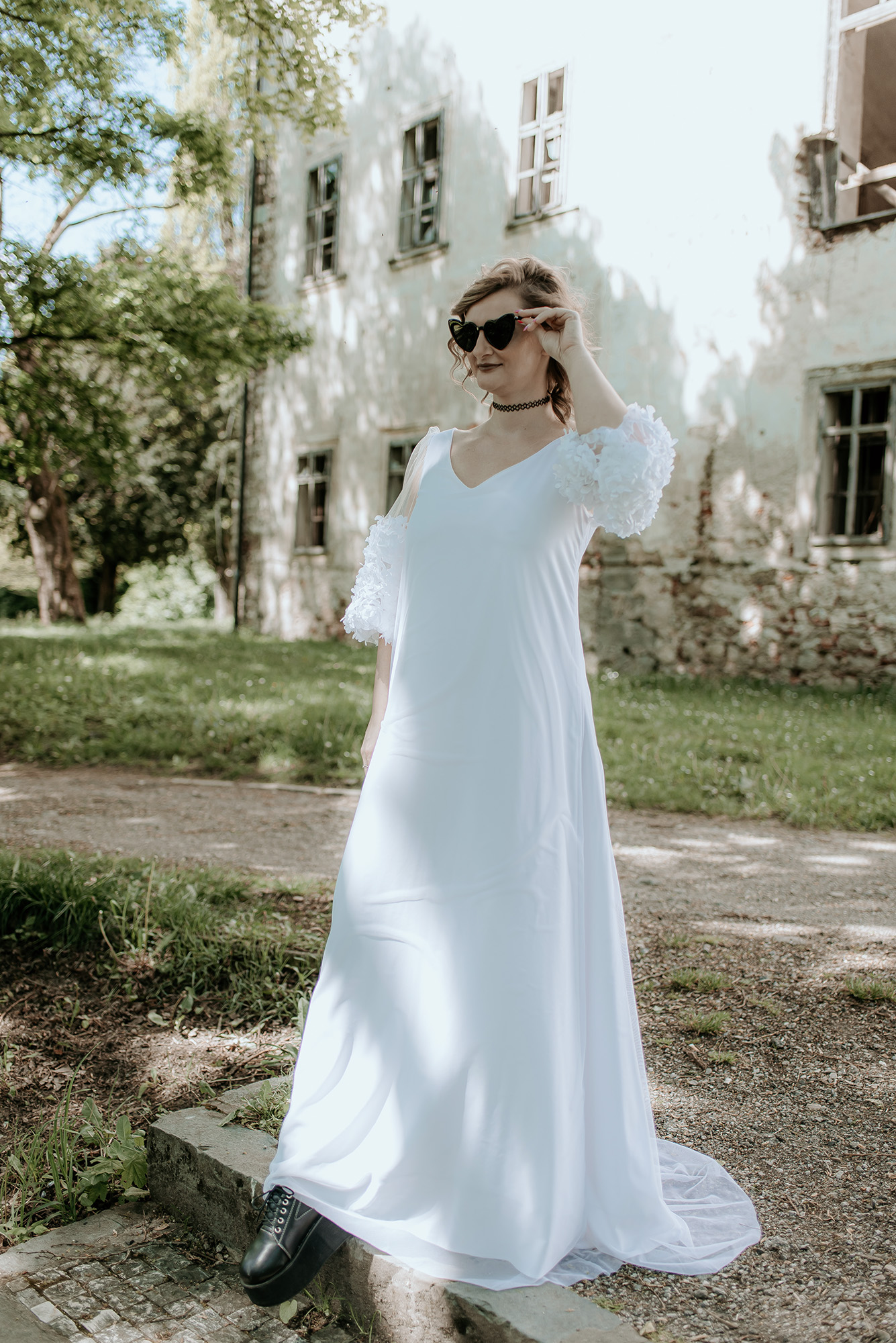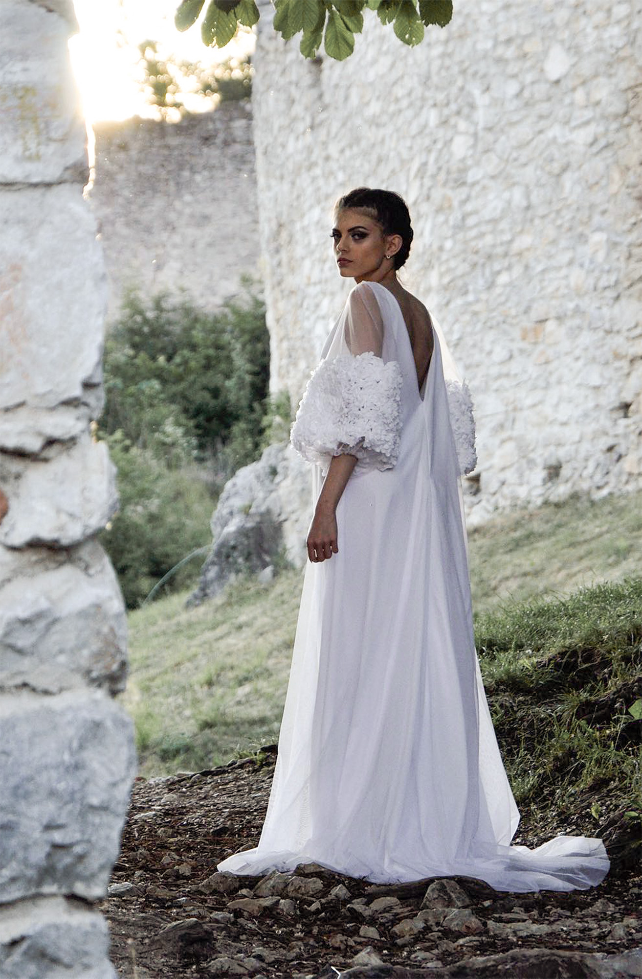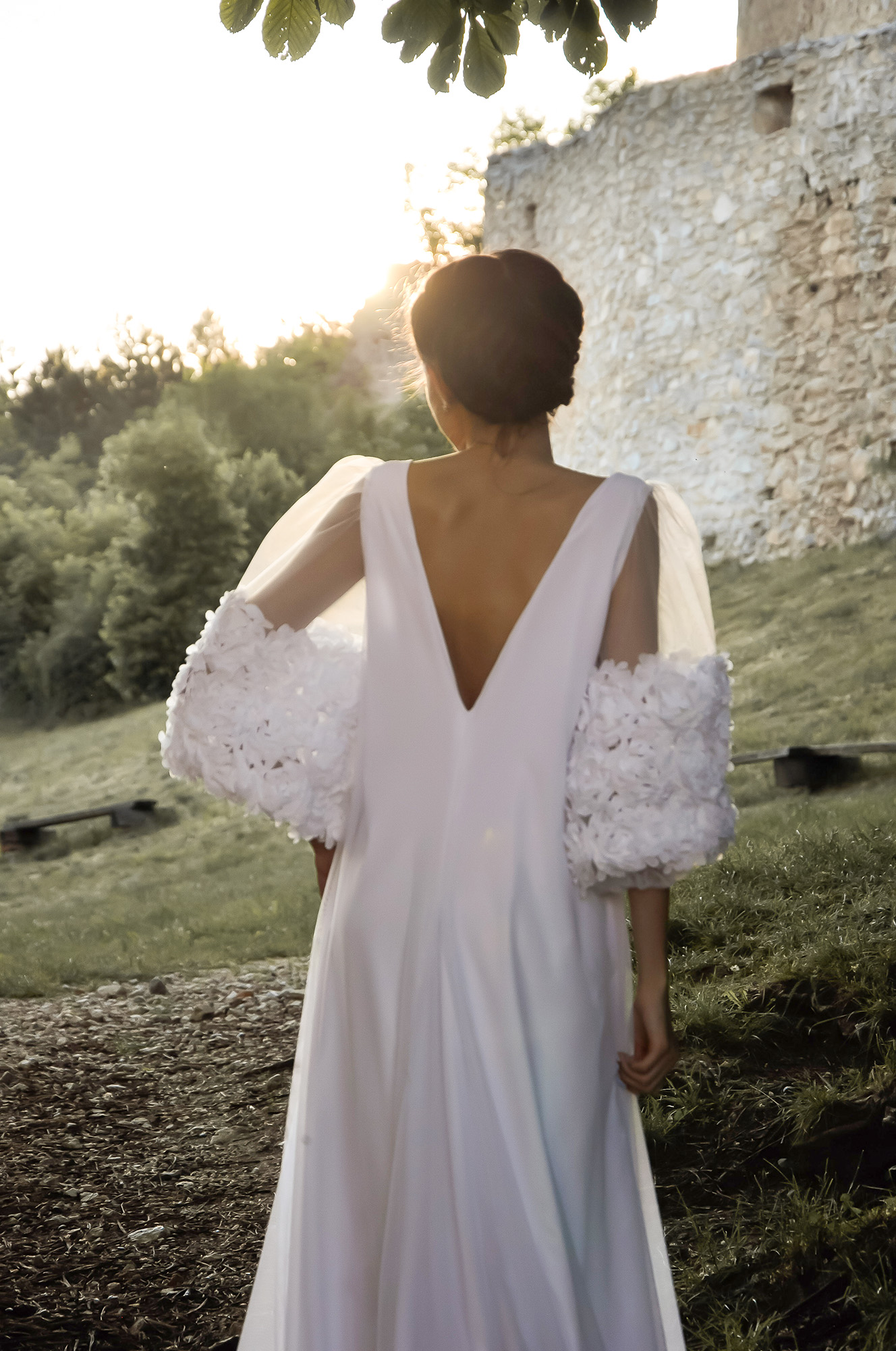 - šaty sú len na prevlečenie, nemajú žiadne zapínanie - veľké puff rukávy s 3D kvietkami - oversize strih s odhaleným chrbtom - farba: white - veľkosť univerzálna 34 - 42
